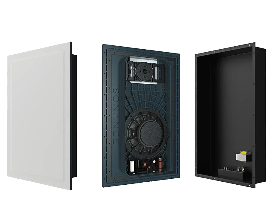 For spaces where design is critical, we offer invisible speakers that are installed behind finishes like drywall or plaster. They disappear entirely into the architecture while still delivering a refined listening experience.